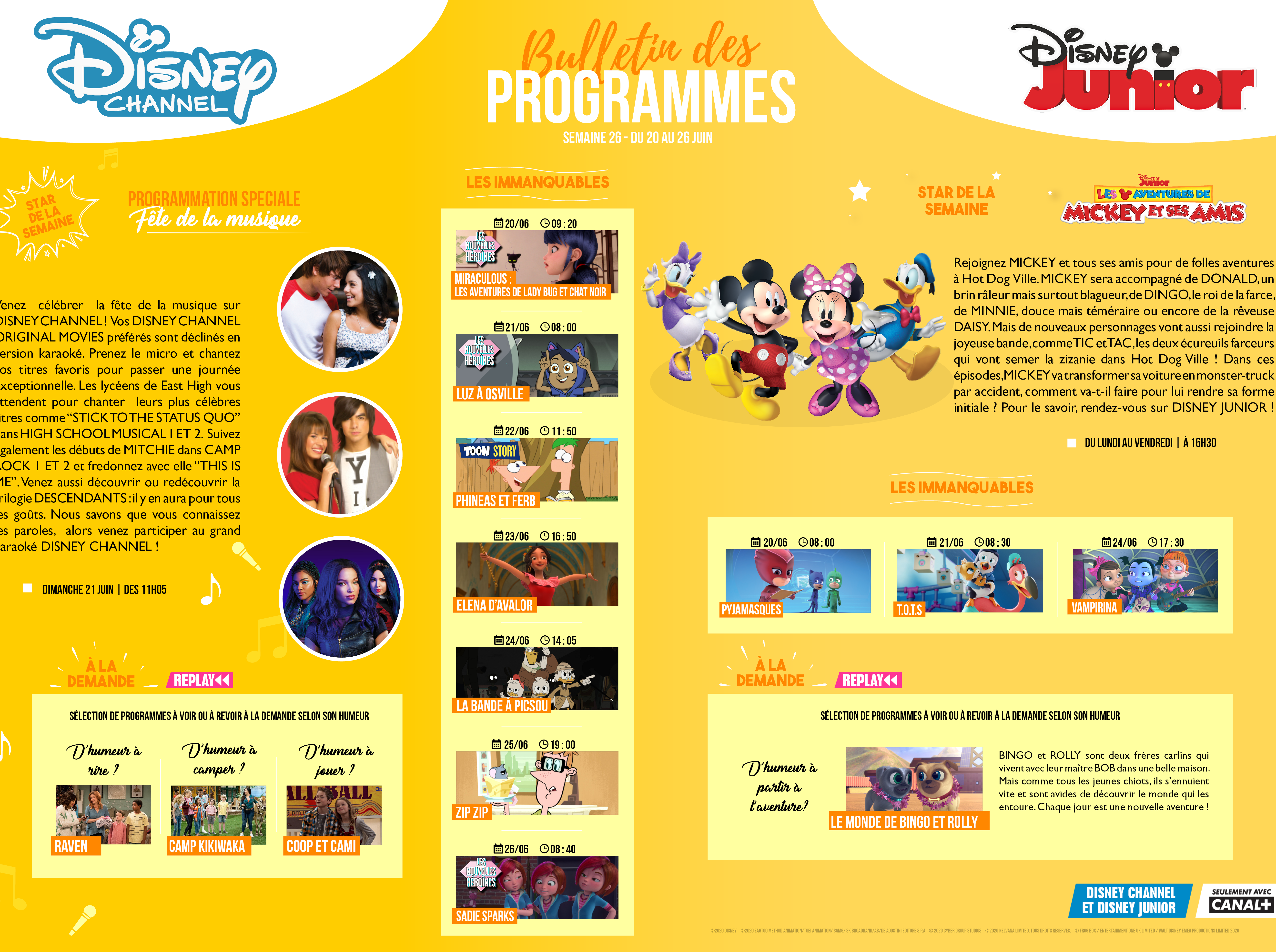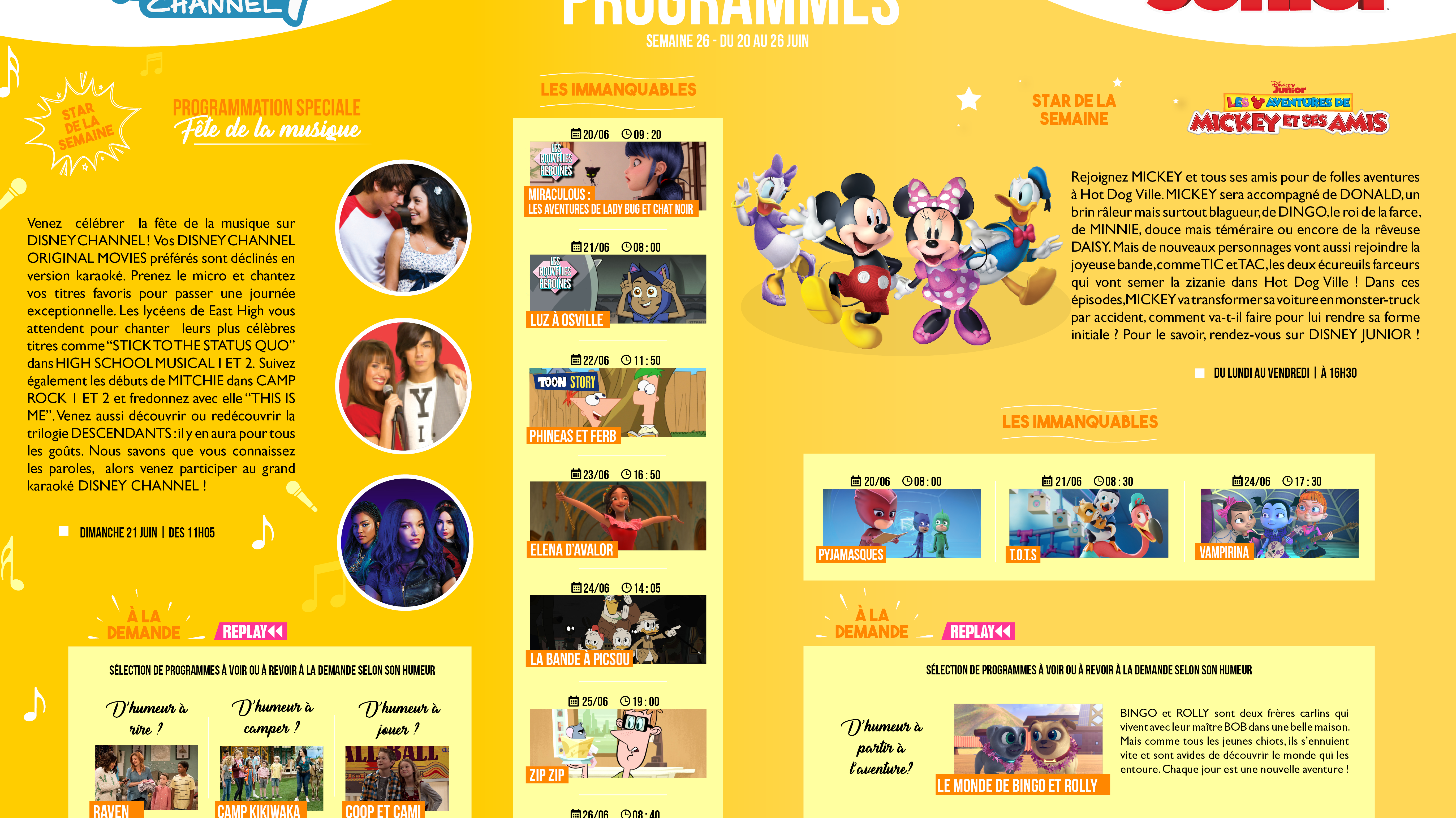 Chaînes Disney : Bulletin des programmes semaine 26