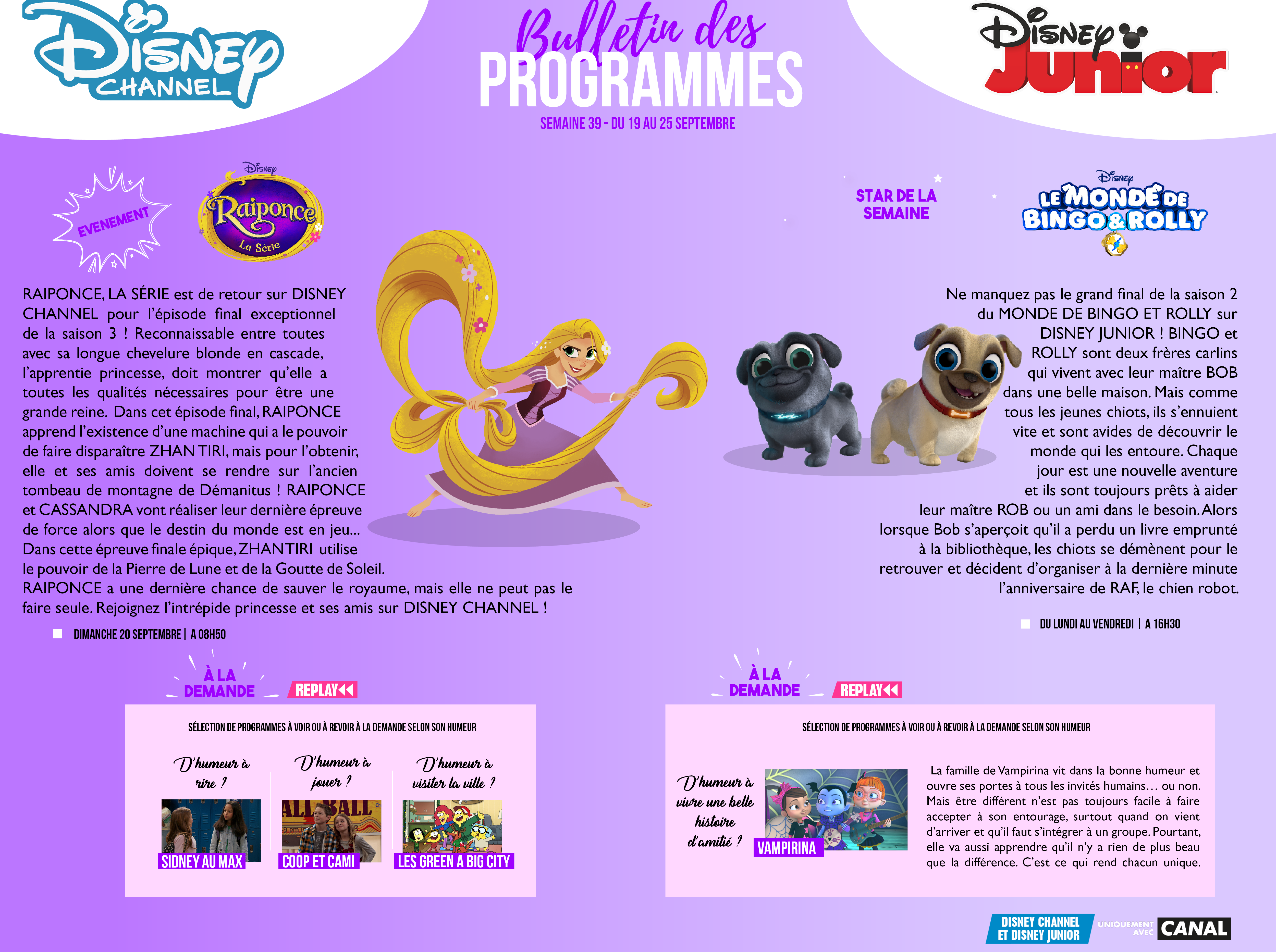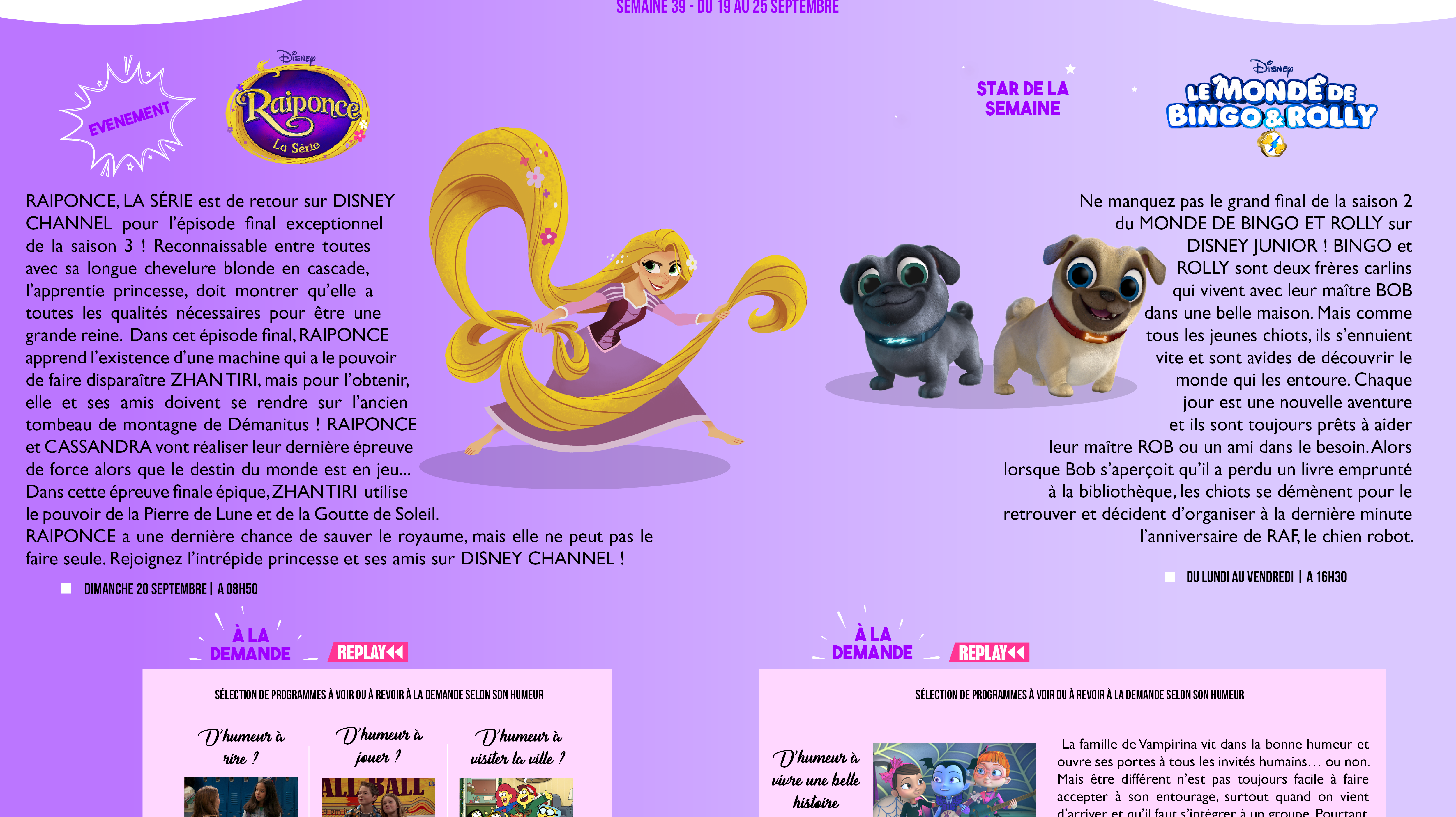 Chaînes Disney : Bulletin des programmes semaine 39